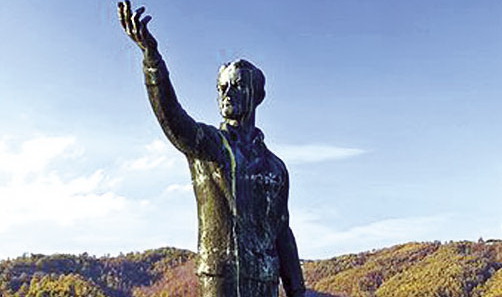 Spomenik Žikici Jovanoviću Špancu u u Radanovcima pokraj Kosjerića, na mestu Jovanovićeve pogibije, rad vajara Miroslava Protića. Izvor fotografije: KontraPRESS.