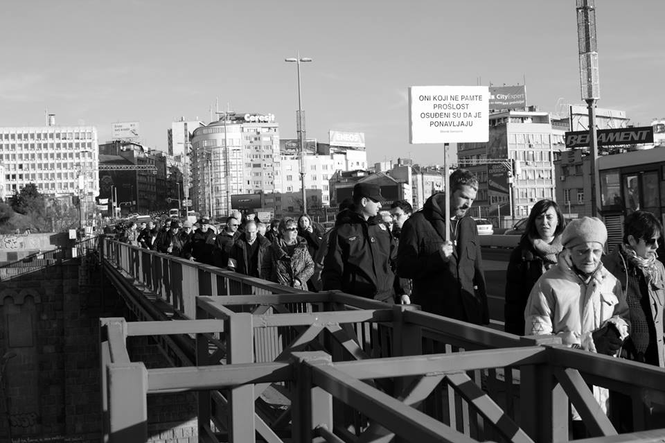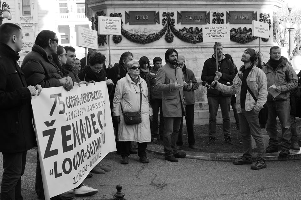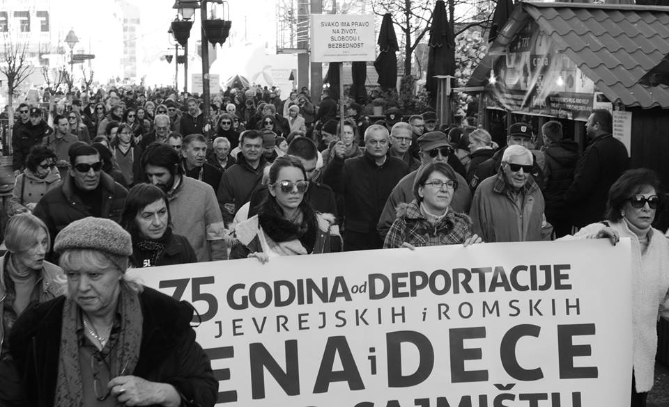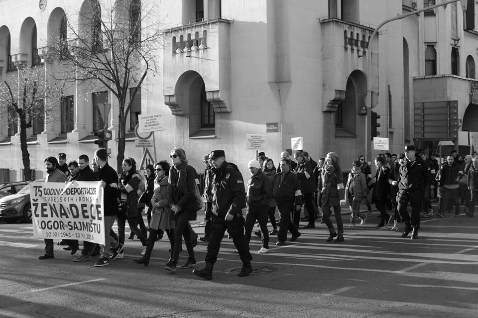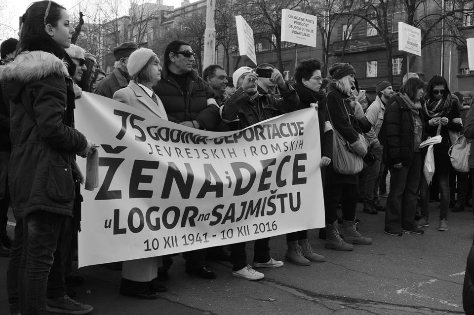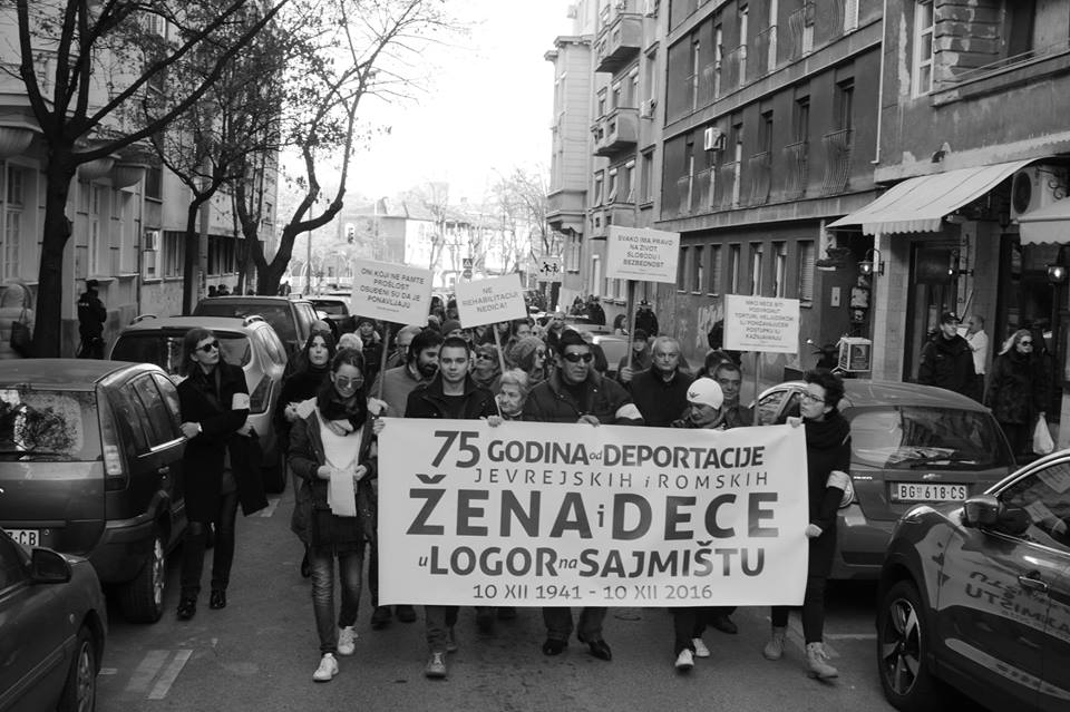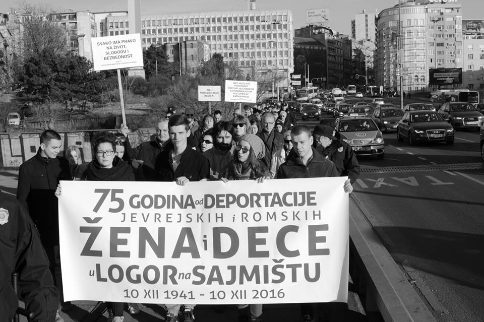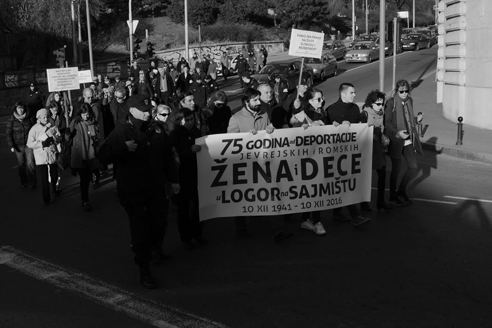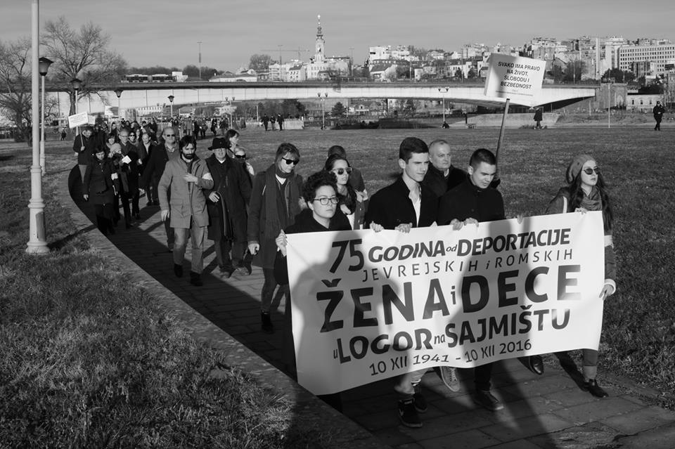 U danima između 8. i 12. decembra 1941. godine Jevrejke, Romkinje i njihova deca koji su živeli u Beogradu deportovani su u Jüdenlager Semlin, poznatiji kao logor na Sajmištu. Ove godine se navršava 75. godišnjica od tih događaja. Centar za istraživanje i edukaciju o Holokaustu, Savez jevrejskih opština Srbije, Savez antifašista Srbije, Žene u crnom i Inicijativa mladih za ljudska prava, su organizovali u subotu 10. decembra, na Međunarodni dan ljudskih prava, komemorativni program pod naslovom „Stazama sećanja”. Obeležavanje 75. godišnjice od deportacije u logor počelo je na uglu ulica Džordža Vašingtona i Dalmatinske (kod vrtića „Skadarlija”), gde se 1941. godine nalazilo sedište „Policije za Jevreje i Cigane”. Odatle se povorka uputila prema trgu Republike i prošla pored Doma Vojske (tadašnjeg sedišta Gestapo-a), da bi na kraju stigla na Sajmište, gde je održan komemorativni skup.