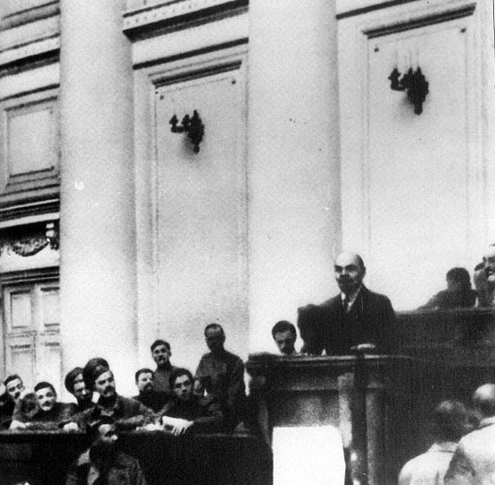 Ruski revolucionar Vladimir Lenjin drži govor u Tavričeskom dvorcu. Izvor fotografije: Marxits